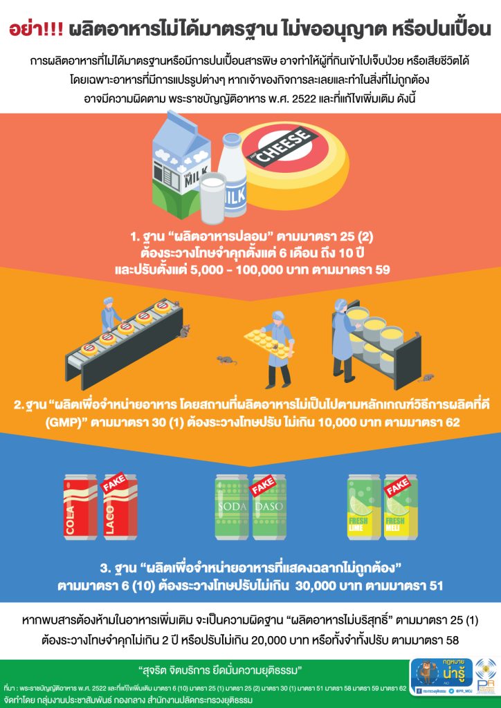 #กระทรวงยุติธรรม #กฎหมาย #ผลิตอาหารไม่ได้มาตรฐาน #ไม่ขออนุญาต #หรือปนเปื้อน