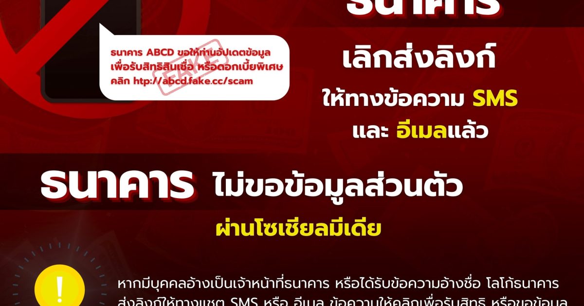 - ธนาคารเลิกส่งลิงก์ให้ทางข้อความ SMS และอีเมลแล้ว