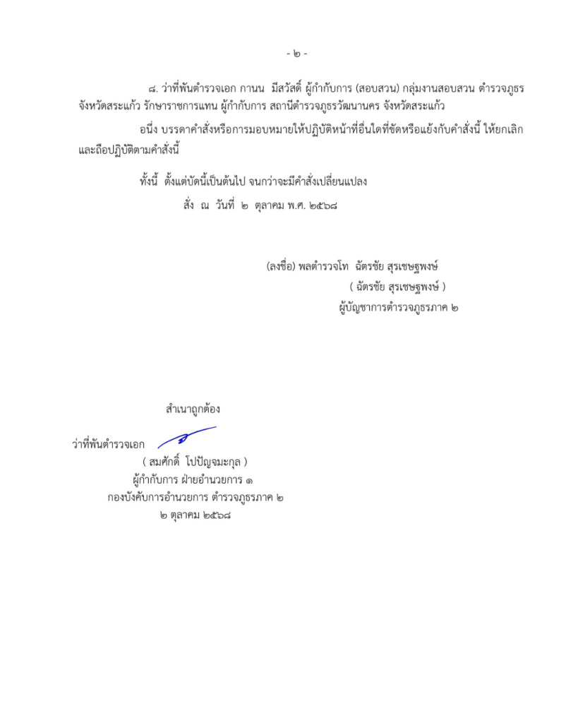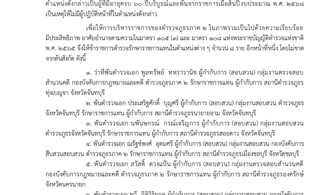 คำสั่งตำรวจภูธรภาค 2 ที่ 286/2568 เรื่อง ข้าราชการตำรวจรักษาราชการแทน