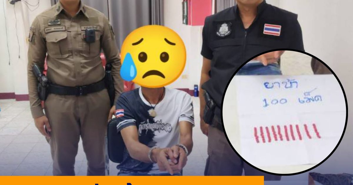 จับกุมตัวผู้ต้องหา นายธวัติชัย หรือชัย อายุ 44 ปี พร้อมของกลาง ยาบ้า 100 เม็ด