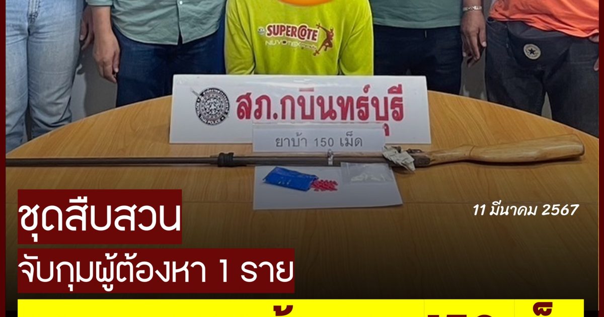 วันที่ 11 มี.ค.67 ชุดสืบสวน ได้ร่วมกันทำการจับตัว นายสุเทพ อายุ 60 ปี พร้อมของกลาง 1. ยาบ้า จำนวน 150 เม็ด 2. ถุงแบ่ง จำนวน 30 ถุง 3. อาวุธปืนยาวแบบไทยประดิษฐ์ (ปืนดินดำ) ไม่มีหมายเลขทะเบียน จำนวน 1 กระบอก กระทำความผิดฐาน 1. จำหน่ายยาเสพติดให้โทษประเภท 1 (ยาบ้า) โดยการมีไว้ในครอบครองเพื่อจำหน่ายโดยไม่ได้รับอนุญาตอันเป็นการกระทำเพื่อการค้าและก่อให้เกิดการแพร่กระจายในกลุ่มประชาชน 2. มีอาวุธปืนไว้ในความครอบครองโดยไม่ได้รับอนุญาต
