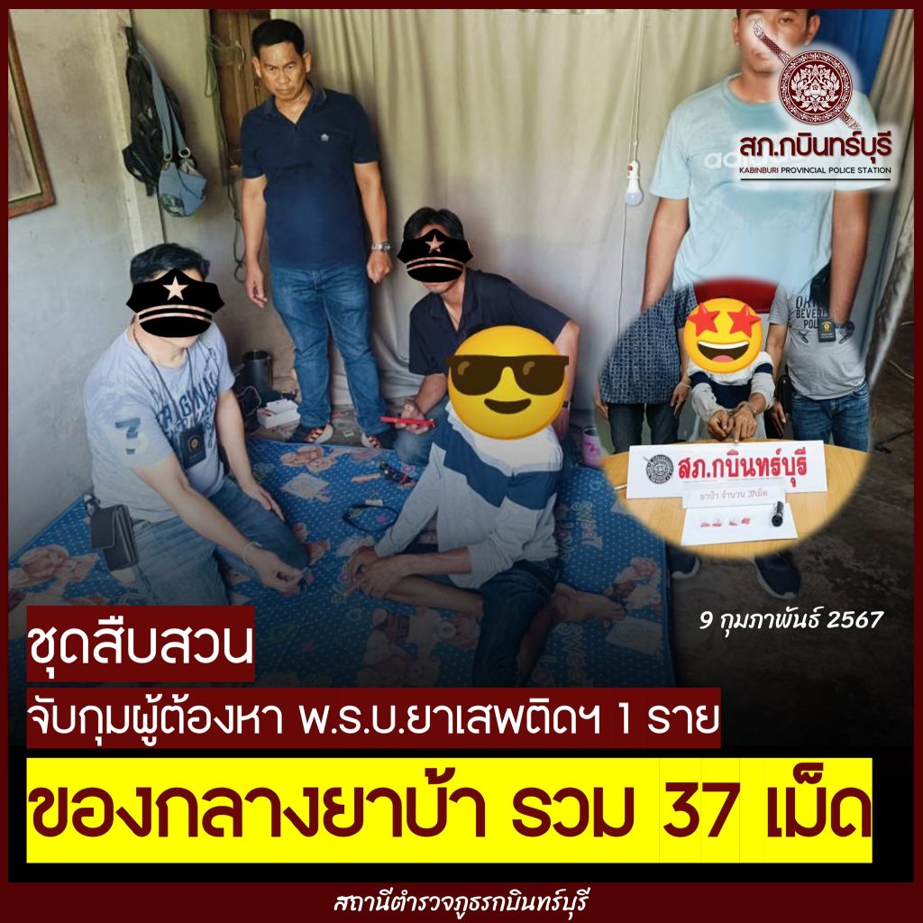 ชุดสืบสวนปราบปรามยาเสพติด 9 กุมภาพันธ์ 2567 โดย kabinburi / ข่าวประชาสัมพันธ์,ข่าวกิจกรรม,ข่าวประชาสัมพันธ์,งานสืบสวน วันที่ 9 ก.พ.67 ชุดสืบสวน จับกุม นายองอาจ อายุ 52 ปี พร้อมของกลาง ยาบ้า จำนวน 37 เม็ด กระทำความผิดฐาน “มียาเสพติดให้โทษประเภทที่ 1 (ยาบ้า) ไว้ในความครอบครองโดยไม่ได้รับอนุญาต” นำตัวผู้ต้องหาส่งพนักงานสอบสวน สภ.กบินทร์บุรี ดำเนินคดีตามกฎหมายต่อไป