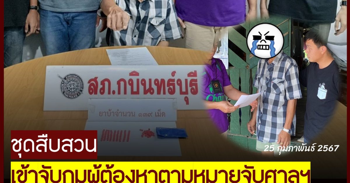 วันที่ 25 ก.พ.67 ชุดสืบสวน จับกุม นายธนกฤต อายุ 49 ปี ผู้ต้องหาตามหมายจับศาลจังหวัดกบินทร์บุรี ที่ 21/2567 ลงวันที่ 23 กุมภาพันธ์ 2567 ซึ่งต้องหาว่ากระทำความผิดฐาน “ร่วมกันจำหน่ายยาเสพติดให้โทษประเภท 1 (เมทแอมเฟตามีนไฮโดรคลอไรด์) โดยการมีไว้ในครอบครองเพื่อจำหน่ายโดยไม่ได้รับอนุญาตอันเป็นการกระทำเพื่อการค้าและการก่อให้เกิดการแพร่กระจายในกลุ่มประชาชน,สมคบโดยตกลงกันตั้งแต่สองคนขึ้นไปเพื่อกระทำผิดร้ายแรงเกี่ยวกับยาเสพติด และได้มีการกระทำความผิดร้ายแรงเกี่ยวกับยาเสพติดเพราะเหตุที่มีการสมคบ,สนับสนุนช่วยเหลือก่อนหรือขณะกระทำความผิด,รับเงิน ทรัพย์สิน หรือประโยชน์อื่นใดจากผู้กระทำความผิดเพื่อประโยชน์ หรือ ให้ความสะดวกแก่การกระทำความผิด หรือเพื่อมิให้ผู้กระทำความผิดถูกลงโทษ” และตรวจค้นพบของกลาง ยาบ้า จำนวน 139 เม็ด กระทำความผิดฐาน “จำหน่ายยาเสพติดให้โทษประเภท 1 (ยาบ้า) โดยการมีไว้เพื่อจำหน่าย”