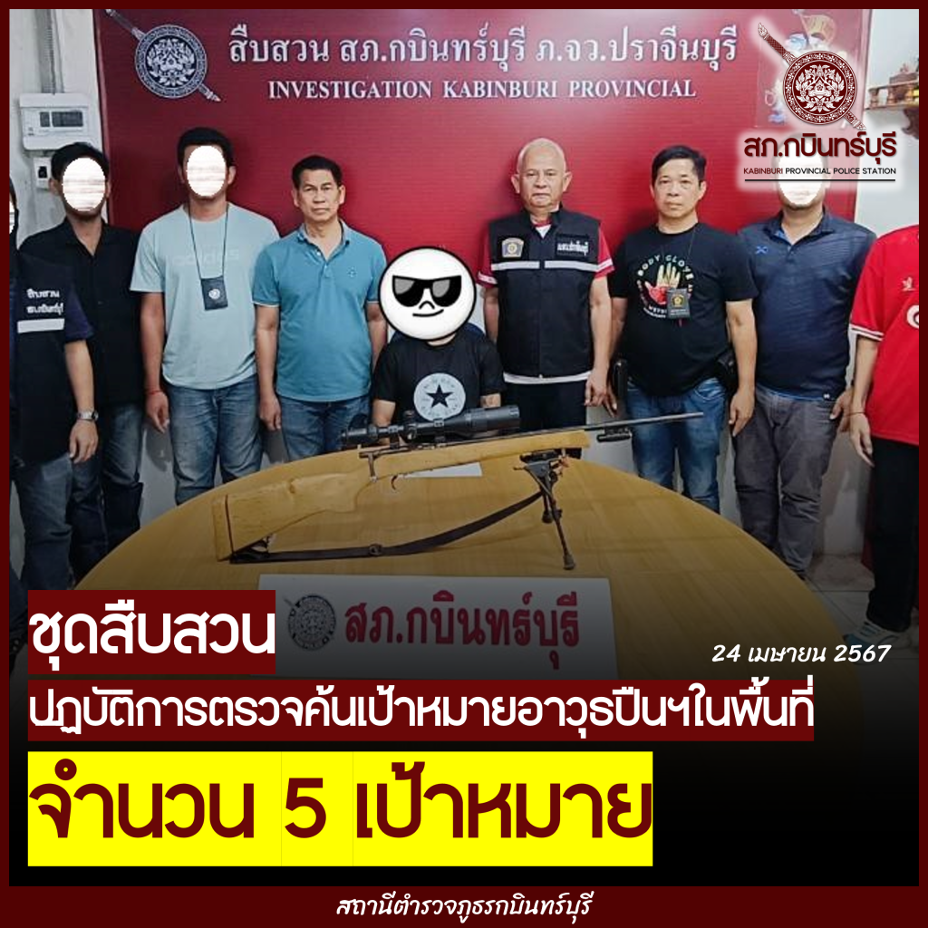 เมื่อวันที่ 24 เม.ย.67 ชุดสืบสวน ปฏิบัติการตรวจค้นเป้าหมายอาวุธปืนและสิ่งของผิดกฎหมาย จำนวน 5 เป้าหมาย