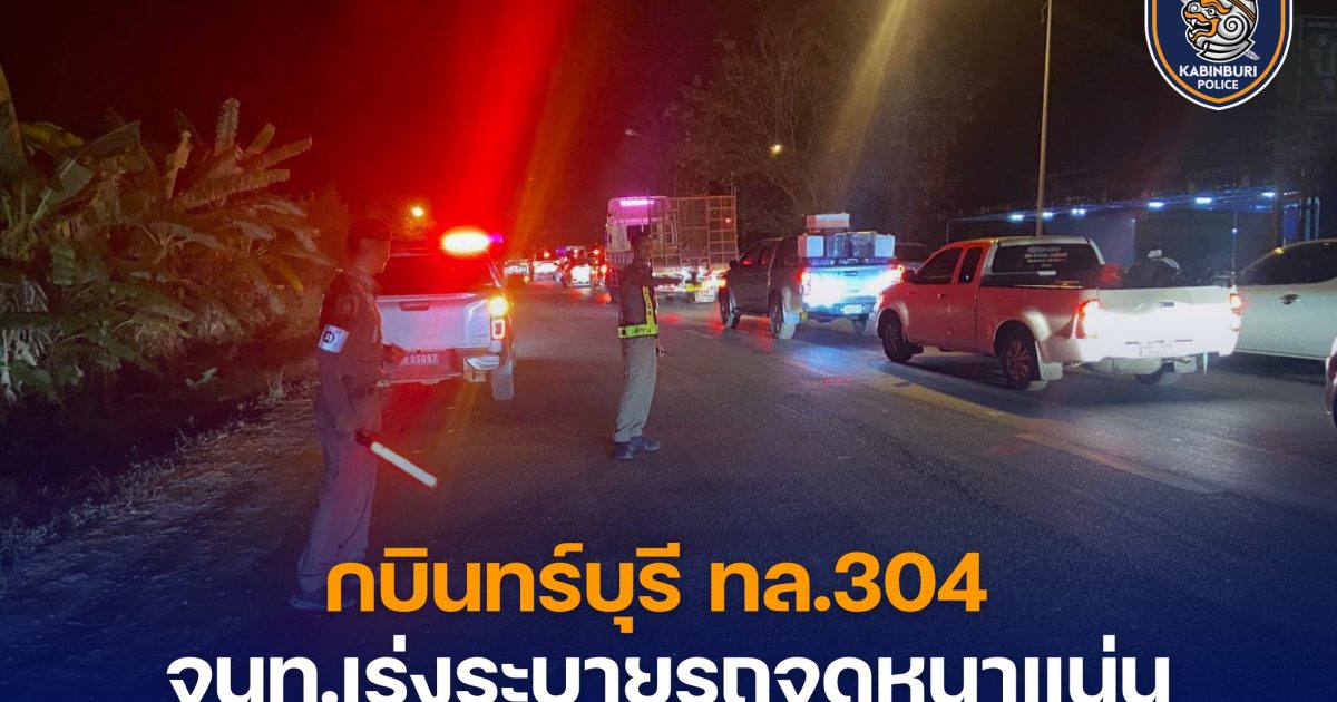วันที่ 5 ม.ค.68 เวลา 00.10 น. ร.ต.อ.สุชด ลาภไธสง รอง สว.จร.สภ.กบินทร์บุรี พร้อมชุดเคลื่อนที่เร็ว ร่วมกันตรวจสภาพการจราจรและอำนวยความสะดวกการจราจร ถนน 304 บริเวณจุดคอขวดก่อนถึงสะพานวังวิทย์ ปริมาณหนาแน่นแต่ยังสามารถเคลื่อนตัวได้ตลอด
