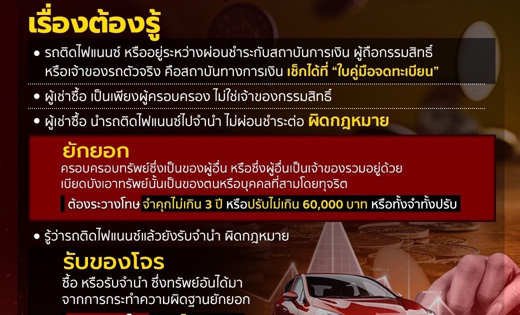 ตร. เตือน จำนำรถติดไฟแนนซ์ ผิดกฎหมาย!