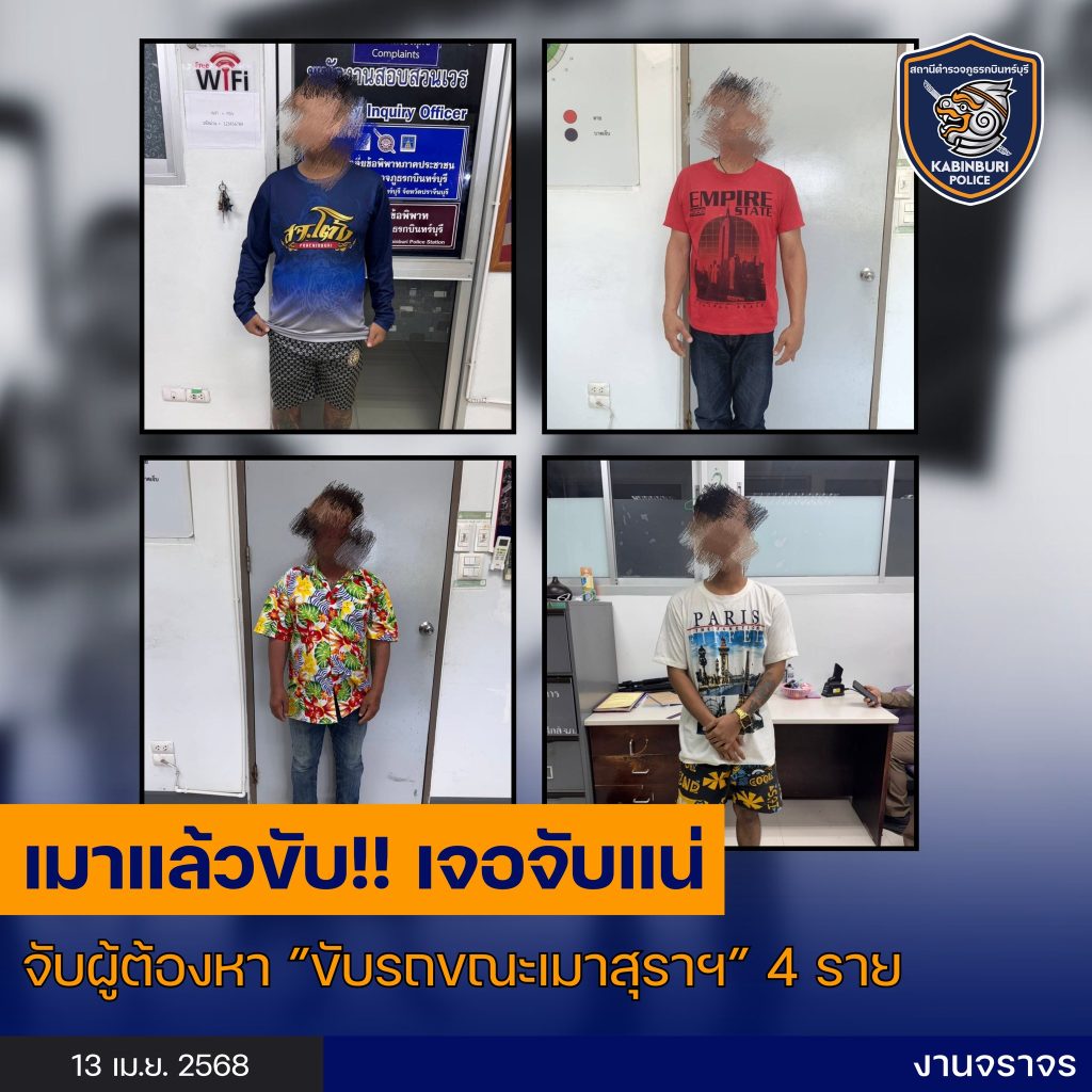 จับกุมผู้ต้องหา 4 ราย กระทำผิดฐาน “ขับรถขณะเมาสุราหรือของเมาอย่างอื่น” นำส่งพนักงานสอบสวน เพื่อดำเนินคดีตามกฎหมายต่อไป