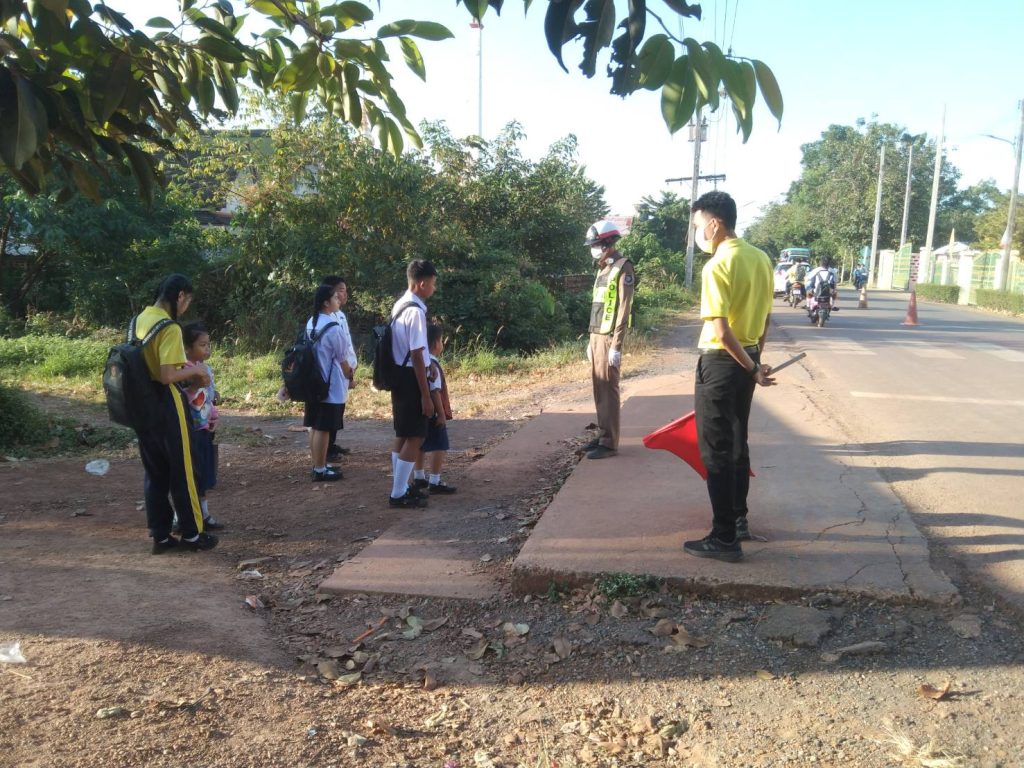 ตำรวจจราจร อำนวยความสะดวกด้านการจราจรแก่เด็กนักเรียน บริเวณหน้าโรงเรียนกบินทร์จริยาคม