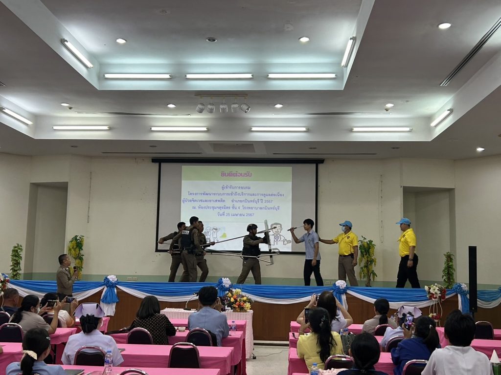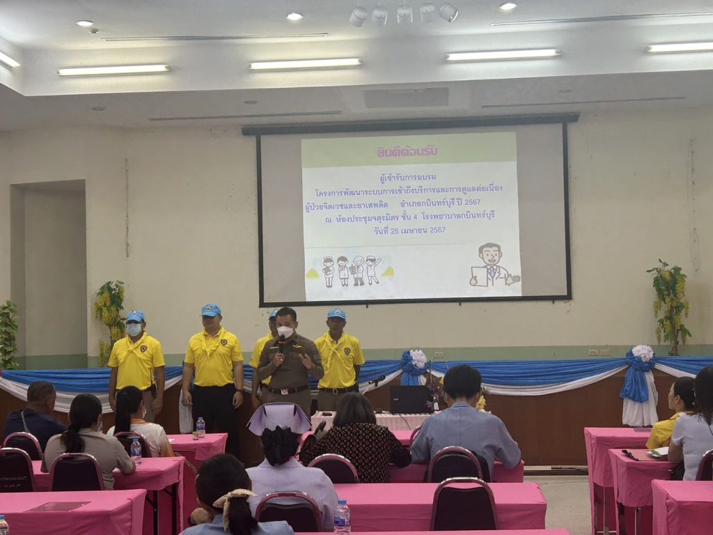 บรรยายและสาธิตวิธีการใช้ไม้ง่าม ตามโครงการพัฒนาระบบการเข้าถึงบริการและการดูแลต่อเนื่องผู้ป่วยจิตเวชและยาเสพติด ณ ห้องประชุมจตุรมิตร ชั้น 4 โรงพยาบาลกบินทร์บุรี อ.กบินทร์บุรี จ.ปราจีนบุรี