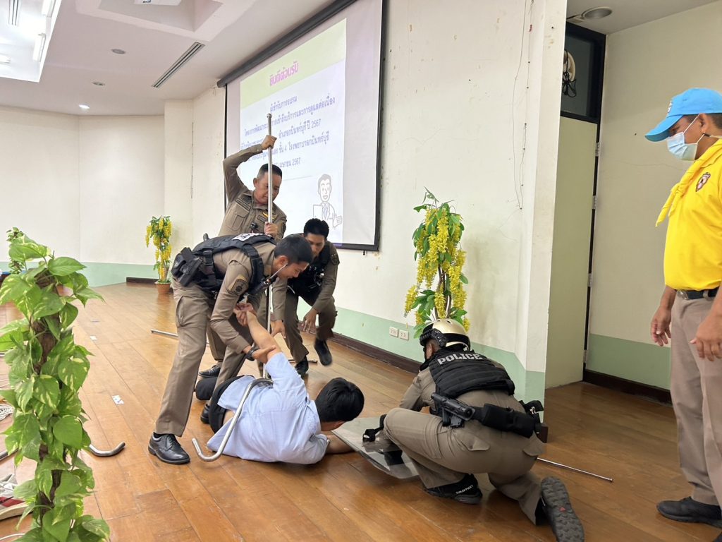 บรรยายการระงับเหตุ และสาธิตวิธีการใช้ไม้ง่าม