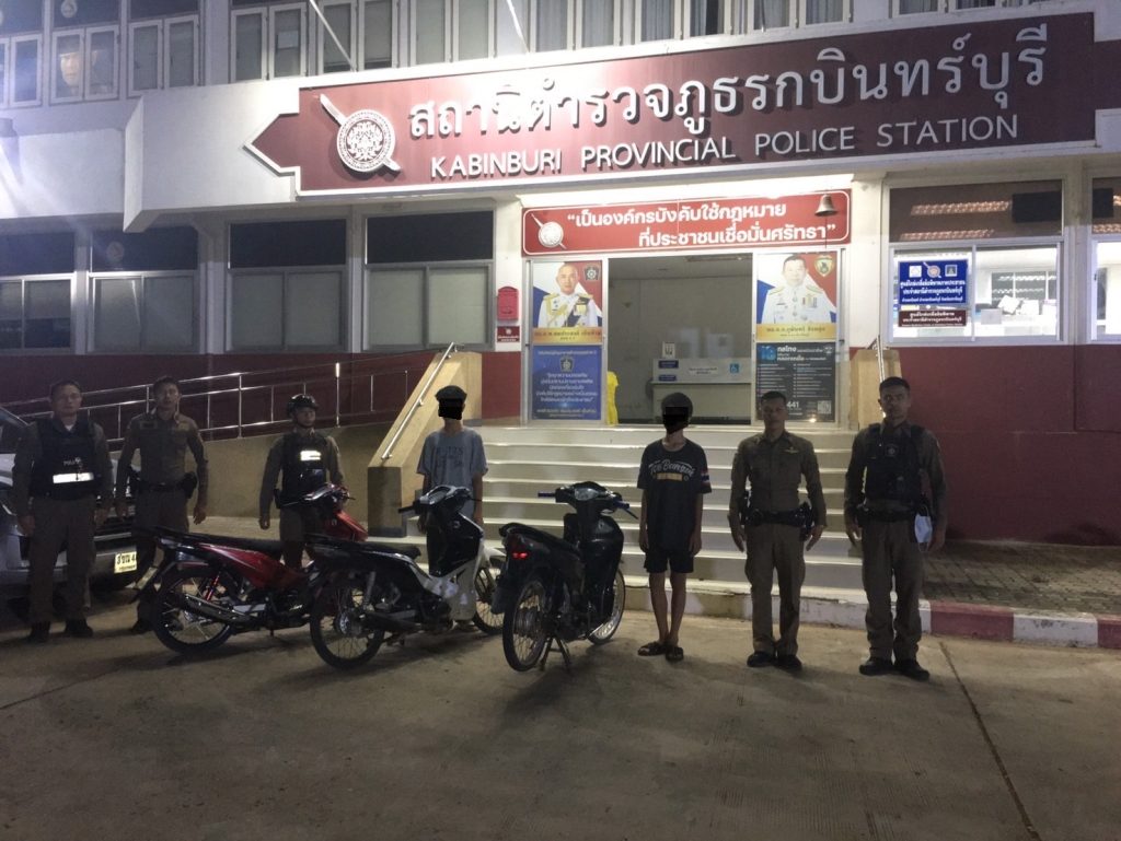เมื่อวันที่ 17 มี.ค.67 เวลา 23.30 น. ร.ต.อ.พิพัฒน์ ศิลา รอง สวป.สภ.กบินทร์บุรี ร้อยเวรป้องกันปราบปราม พร้อมกำลังสายตรวจรถยนต์ สายตรวจรถจักรยานยนต์ และสายตรวจเครือสหพัฒน์ ร่วมกันตรวจยึดรถจักรยานยนต์ จำนวน 3 คัน และจัดทำประวัติฯ เยาวชน จำนวน 2 ราย