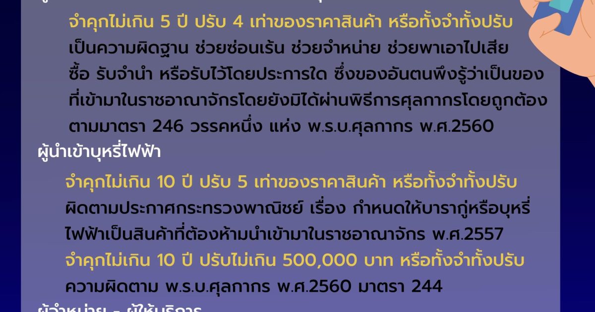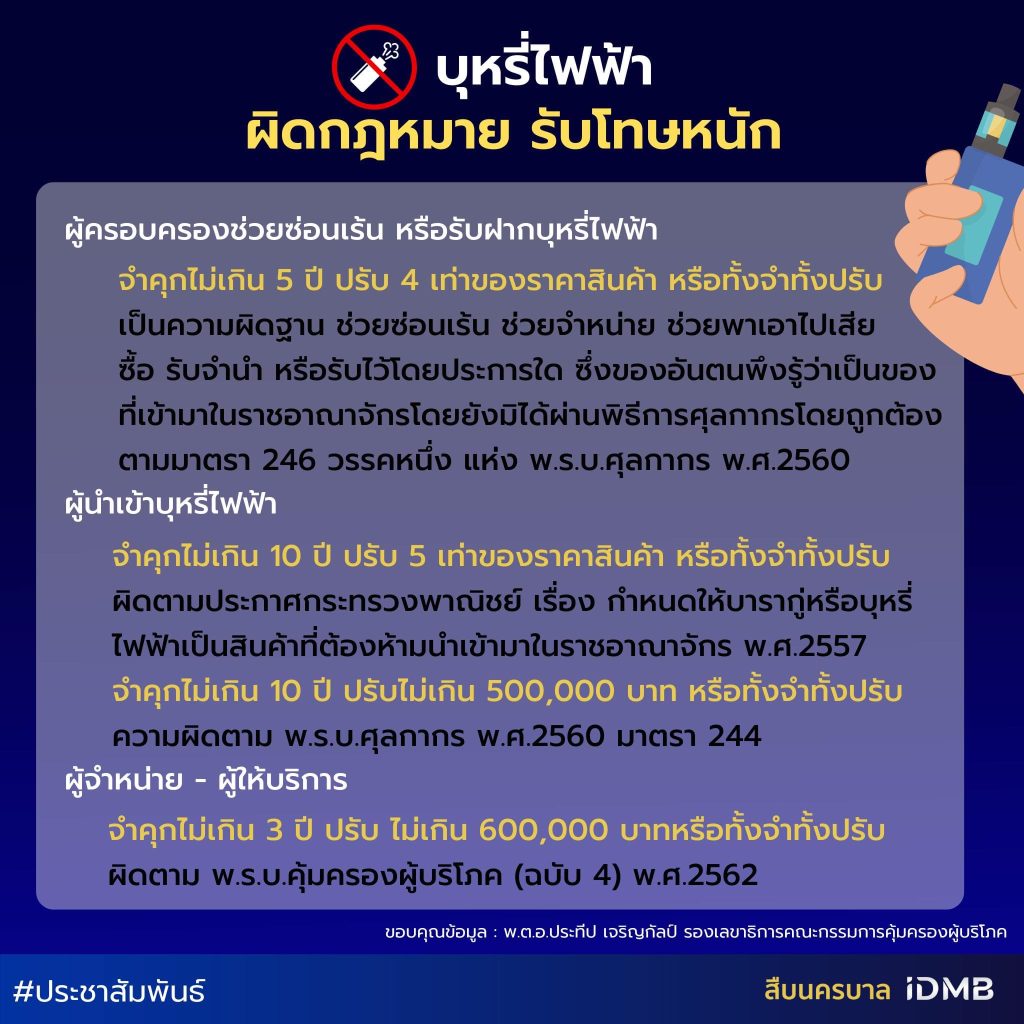 โทษจำคุกไม่เกิน 10 ปีปรับไม่เกิน 10 ปี ปรับ 5 เท่าของราคาบุหรี่ไฟฟ้าหรือทั้งจำทั้งปรับ