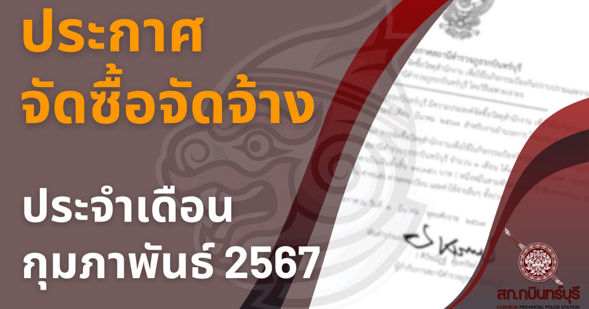 ตามที่ สถานีตำรวจภูธรกบินทร์บุรี มีความประสงค์จัดซื้ออาหารผู้ต้องหา ประจำเดือน กุมภาพันธ์ 2567 โดยเฉพาะเจาะจง นั้น