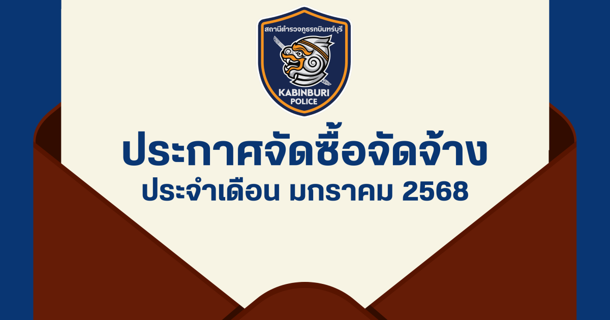 ตามที่ สถานีตำรวจภูธรกบินทร์บุรี มีความประสงค์จ้างเหมาทำความสะอาดที่ทำการ สถานีตำรวจภูธรกบินทร์บุรี  (ตึก 5  ชั้น)  และบริการโดยรอบอาคาร ในปีงบประมาณ พ.ศ. 2568  ประจำเดือน  มกราคม  2568  โดยวิธีเฉพาะเจาะจง นั้น