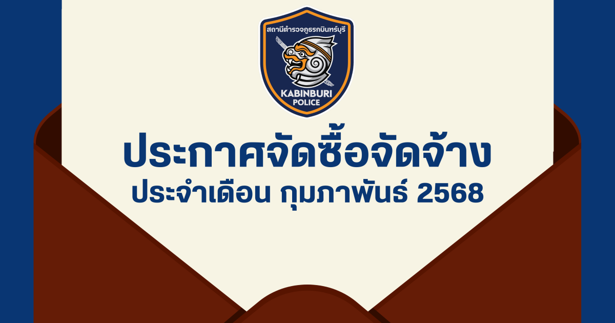 ตามที่ สถานีตำรวจภูธรกบินทร์บุรี มีความประสงค์จ้างเหมาทำความสะอาดที่ทำการ สถานีตำรวจภูธรกบินทร์บุรี  (ตึก 5  ชั้น)  และบริการโดยรอบอาคาร ในปีงบประมาณ พ.ศ. 2568  ประจำเดือน  กุมภาพันธ์  2568  โดยวิธีเฉพาะเจาะจง นั้น
