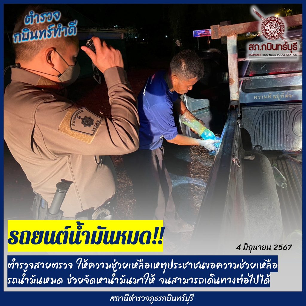 วันที่ 4 มิ.ย.67 เวลา 19.30 น. ร.ต.อ.ธีรพงษ์​ เดช​อำ​พร​ภิญโญ​ รอง สวป.สภ.กบินทร์บุรี พร้อมกำลังสายตรวจรถยนต์ สายตรวจ จยย.