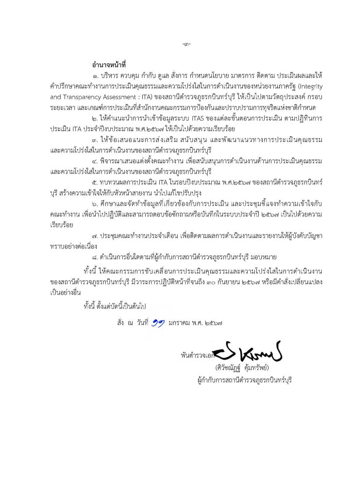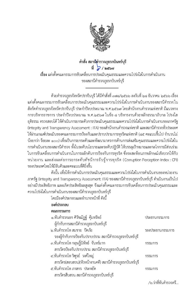 ประชุมชี้แจง เน้นย้ำ ให้ข้อมูล การประเมินคุณธรรมและความโปร่งใส่ ในการดำเนินงานของหน่วยงานภาครัฐ (Integrity &Transparency Assessment : ITA) ของสถานีตำรวจ