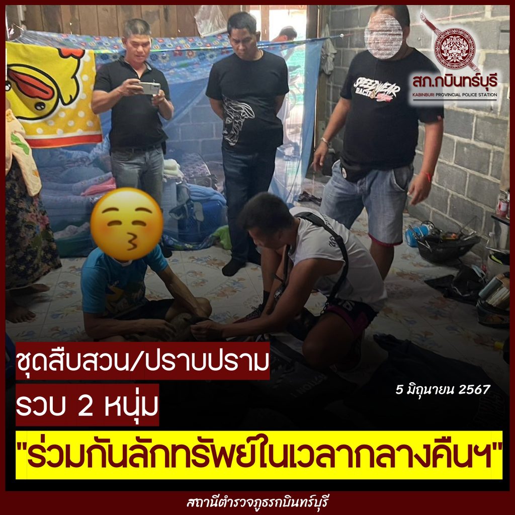 วันที่ 5 มิ.ย.67 พ.ต.ท.ภาสกร ประหยัด สว.สส.สภ.กบินทร์บุรี พร้อมชุดสืบสวน ร่วมกับ ร.ต.อ.ธีระพงษ์ เดชอำพรภิญโญ รอง สวป.สภ.กบินทร์บุรี ป้องกันปราบปรามอาชญากรรม ยาเสพติด และความผิดอื่นที่เกี่ยวข้อง จับกุมตัวผู้ต้องหา จำนวน 2 ราย