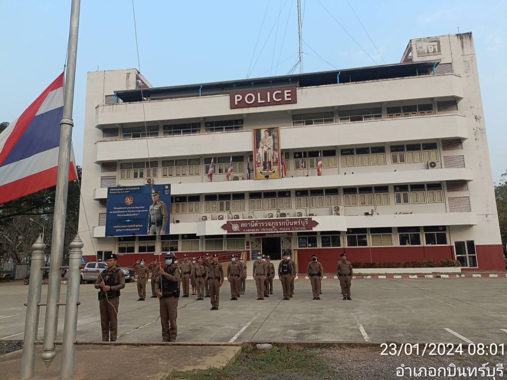 วันที่ 23 ม.ค.67 เวลา 08.00 น. พ.ต.อ.ศิวัชณัฏฐ์ คุ้มทรัพย์ ผกก.สภ.กบินทร์บุรี ,พ.ต.ท.กฤษฏิ์นิพัทธ์ จันทร์มาก สวป.สภ.กบินทร์บุรี ,พ.ต.ต.กฤติเดช จิรโชติพัฒน์ สว.อก. สภ.กบินทร์บุรี นำข้าราชการตำรวจในสังกัด เข้าแถวเคารพธงชาติประจำสัปดาห์ สวดมนต์ไหว้พระ กล่าวบทปลงใจ กล่าวคำสัตย์ปฏิญานตน และกล่าวอุดมคติตำรวจ ประชุมชี้แจงข้อราชการ และปล่อยแถวสายตรวจออกปฏิบัติหน้าที่ในเขตพื้นที่รับผิดชอบ