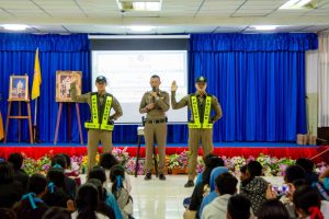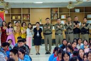 ผกก.สภ.กบินทร์บุรี นำกำลังบรรยายให้ความรู้กฎหมายจราจรเบื้องต้น, กฎหมายยาเสพติด, โทษของบุหรี่ไฟฟ้า และประกาศเจตนารมณ์ในการป้องกันปราบปรามการทุจริต
