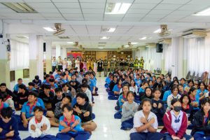 บรรยายให้ความรู้กฎหมายจราจรเบื้องต้น, กฎหมายยาเสพติด, โทษของบุหรี่ไฟฟ้า ประชาสัมพันธ์การป้องกันภัยอาชญากรรมทางเทคโนโลยี และประกาศเจตนารมณ์ในการป้องกันปราบปรามการทุจริต ให้กับคณะครูและนักเรียนโรงเรียนกบินทร์บุรี ณ ห้องประชุมโรงเรียนกบินทร์บุรี