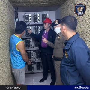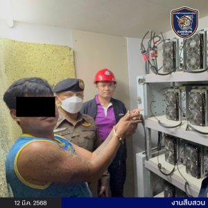 วันที่ 12 มี.ค.68 พ.ต.อ.ศิวัชณัฏฐ์ คุ้มทรัพย์ ผกก.สภ.กบินทร์บุรี, นายบัณฑิต ปานท้วม ผู้จัดการการไฟฟ้าส่วนภูมิภาคสาขากบินทร์บุรี พร้อมนำกำลังชุดสืบสวน สภ.กบินทร์บุรี และเจ้าหน้าที่การไฟฟ้าส่วนภูมิภาค อำเภอกบินทร์บุรี เข้าตรวจค้นอาคารพาณิชย์ จำนวน 6 หลัง พื้นที่ ต.กบินทร์ อ.กบินทร์บุรี จ.ปราจีนบุรี ซึ่งมีการลักลอบใช้กระแสไฟฟ้าโดยดัดแปลงสายไฟฟ้าเพื่อต่อใช้งานกับเครื่องขุดเหรียญสกุลเงินดิจิตอลบิท ทำให้เกิดความเสียหายประมาณ 14,400,000 บาท