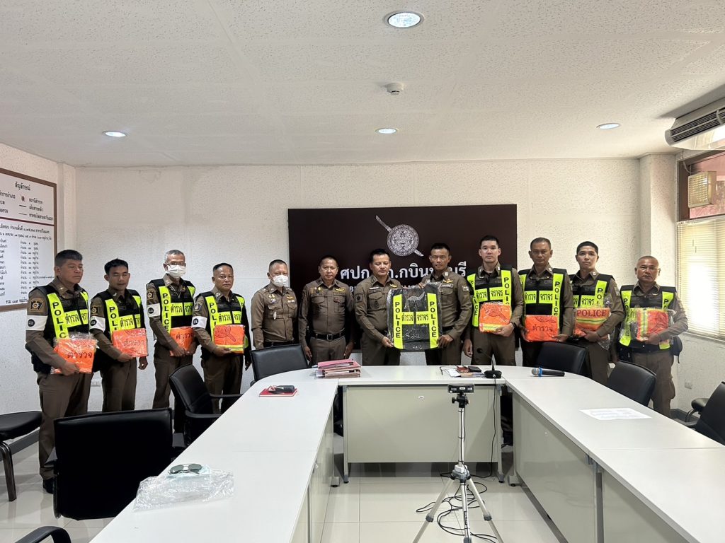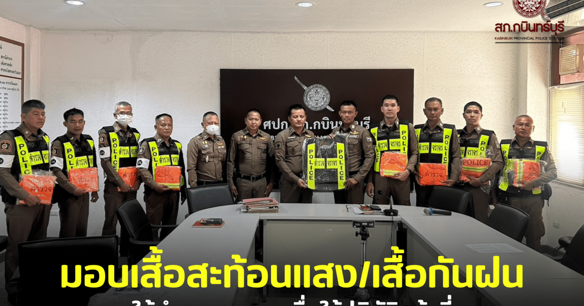 ได้มอบเสื้อสะท้อนแสงและเสื้อกันฝนซึ่งได้รับการสนับสนุนฯ ให้กับข้าราชการตำรวจที่ปฎิบัติหน้าที่งานจราจรทุกนาย เพื่อใช้อำนวยความสะดวกด้านการจราจรให้กับพี่น้องประชาชน ณ ห้องประชุม ศปก.สภ.กบินทร์บุรี