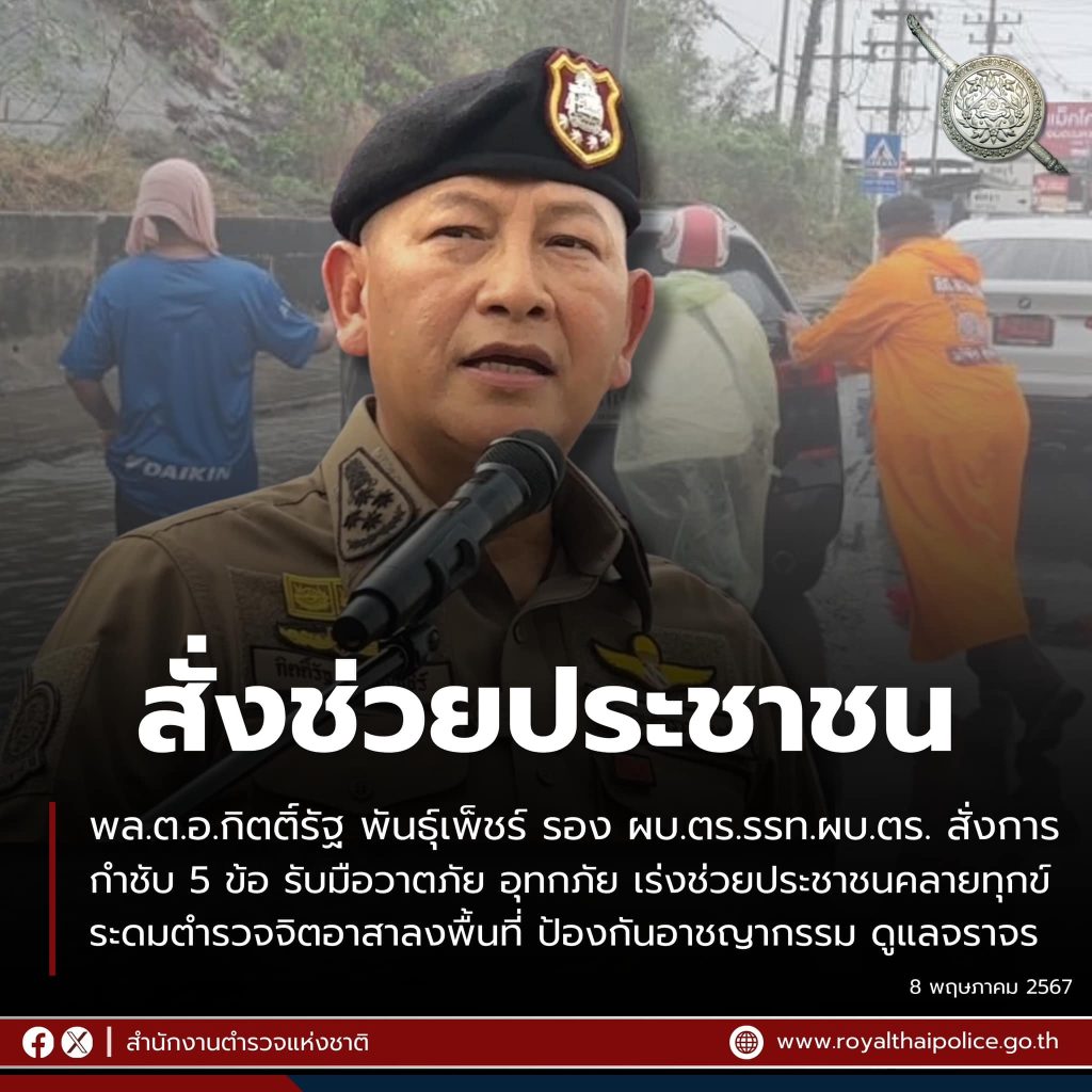 3.กำชับการเพิ่มมาตรการรักษาความสงบเรียบร้อย และความปลอดภัยของประชาชนในพื้นที่ประสบภัย ตลอดจนควบคุมและบังคับใช้กฎหมาย ป้องกันปราบปรามกลุ่มมิจฉาชีพที่อาจฉวยโอกาสซ้ำเติมเอารัดเอาเปรียบประชาชน