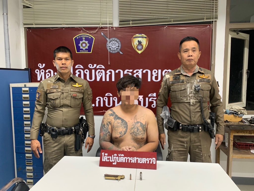 ร่วมจับกุมตัวผู้ต้องหา นายชัชชัย อายุ 21 ปี ที่อยู่ ม.7 ต.กบินทร์ อ.กบินทร์บุรี จ.ปราจีนบุรี พร้อมของกลาง อาวุธปืนไทยประดิษฐ์ปืนปากกา จำนวน 1 กระบอก