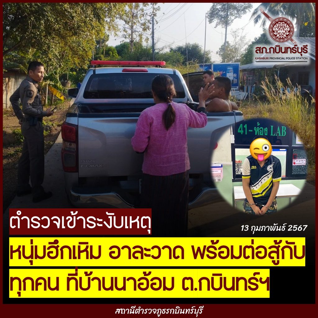 วันที่ 13 กุมภาพันธ์ 2567 พ.ต.อ.ศิวัชณัฏฐ์  คุ้มทรัพย์ ผกก.สภ.กบินทร์บุรี ,พ.ต.ท.สมชาย ปัดภัย รอง ผกก.ป.สภ.กบินทร์บุรี, พ.ต.ท.กฤษฏิ์นิพัทธ์ จันทร์มาก สวป.สภ.กบินทร์บุรี สั่งการให้ ร.ต.อ.ธีรพงษ์ เดชอำพรภิญโญ รอง สวป.สภ.กบินทร์บุรี ,ด.ต.มนูญ ศรีไสย์ ,ส.ต.ต.เวชพิสิฐ แจ้งไข่ ,ส.ต.ต.วรเดช ไชยรบ เข้าระงับเหตุมีบุคคลฮึกเหิม อาละวาด พร้อมต่อสู้กับทุกคน ตามที่ได้รับแจ้งจากศูนย์วิทยุ สภ.กบินทร์บุรี คาดว่าคงเสพฯมาทั้งโรงงานผลิตฯ ถึงมีอาการได้หนักขนาดนี้ สถานที่เกิดเหตุ บ้านนาอ้อม ม.2 ต.กบินทร์ อ.กบินทร์บุรี จ.ปราจีนบุรี ผลการปฏิบัติ เจ้าหน้าที่ตำรวจควบคุมตัว นายวินิจฯ อายุ 27 ปี นำตัวมาทำการตรวจปัสสาวะตามขั้นตอน ผลเป็นบวก ทำการจับกุมข้อหา “เสพยาเสพติดให้โทษประเภท1(ยาบ้า) โดยไม่ได้รับอนุญาต” นำตัวผู้ต้องหาส่งพนักงานสอบสวน สภ.กบินทร์บุรี ดำเนินคดีตามกฎหมายต่อไป
