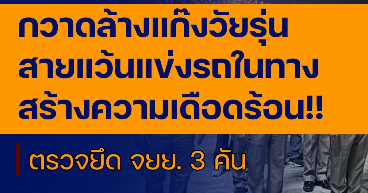 ร่วมกันตรวจยึดรถจักรยานยนต์ จำนวน 3 คัน ไม่มีเอกสารการครอบครอง ดัดแปลงสภาพรถ และไม่ติดแผ่นป้ายทะเบียน บันทึกข้อมูลกลุ่มเสี่ยงต่อการแข่งรถในทางในทุกพื้นที่ไว้ในระบบ CRIME พร้อมแจ้งผู้ปกครองให้นำเอกสารที่เกี่ยวข้อง แก้ไขรถให้ถูกต้อง และทำทัณฑ์บนผู้ปกครอง ว่ากล่าวตักเตือน