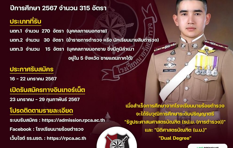 รับสมัครและสอบคัดเลือกข้าราชการตำรวจ และบุคคลภายนอกเข้าเป็นนักเรียนเตรียมทหาร ในส่วนของสำนักงานตำรวจแห่งชาติ ประจำปีการศึกษา 2567