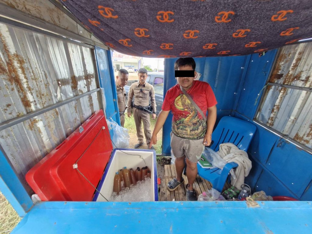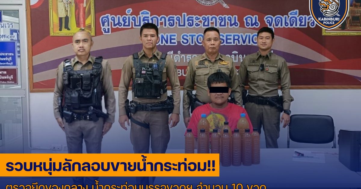 ร่วมจับกุมตัวผู้ต้องหา นายสุเมธ อายุ 25 ปี ที่อยู่ ม.6 ต.ทุ่งโพธิ์ อ.นาดี จ.ปราจีนบุรี พร้อมของกลาง 1. น้ำกระท่อมบรรจุขวดขนาด 1.5 ลิตร จำนวน 3 ขวด 2. น้ำกระท่อมบรรจุขวดขนาด 600 มล. จำนวน 7 ขวด กระทำความผิดฐาน “จำหน่ายอาหารที่มีพืชกระท่อมเป็นส่วนผสมโดยไม่ได้รับอนุญาตและจำหน่ายยาแผนปัจจุบันโดยไม่ได้รับอนุญาต”