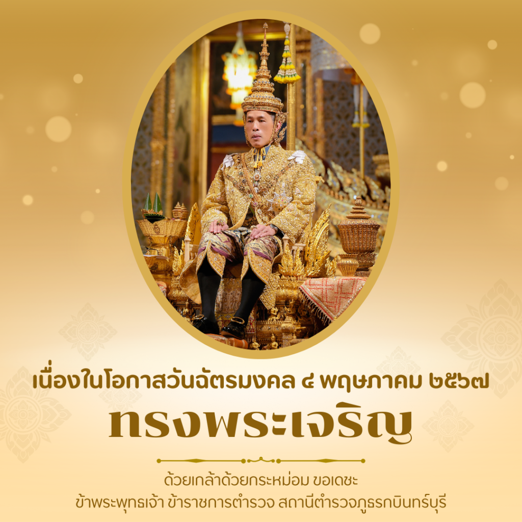 วันฉัตรมงคล ๔ พฤษภาคม ๒๕๖๗ 4 พฤษภาคม 2567 โดย kabinburi / ข่าวประชาสัมพันธ์,ข่าวกิจกรรม,ข่าวประชาสัมพันธ์,ข่าวประชาสัมพันธ์,ข่าวฝากประชาสัมพันธ์ เนื่องในโอกาสวันฉัตรมงคล ๔ พฤษภาคม ๒๕๖๗ทรงพระเจริญด้วยเกล้าด้วยกระหม่อม ขอเดชะข้าพระพุทธเจ้า ข้าราชการตำรวจ สถานีตำรวจภูธรกบินทร์บุรี#วันฉัตรมงคล #สืบสานรักษาต่อยอด #สถานีตำรวจภูธรกบินทร์บุรี