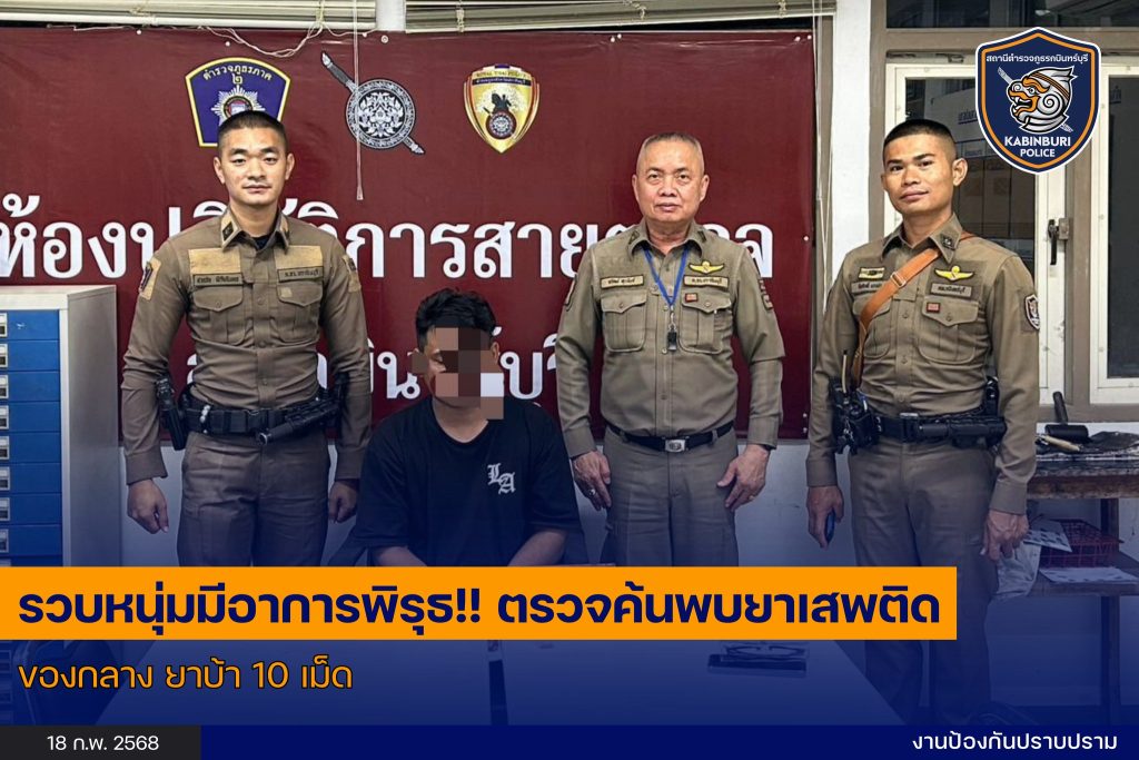 จับกุมตัวผู้ต้องหา นายวรวิทย์ อายุ 30 ปี ที่อยู่ ม.15 ต.วังดาล อ.กบินทร์บุรี จ.ปราจีนบุรี พร้อมของกลาง ยาบ้า จำนวน 10 เม็ด กระทำความผิดฐาน”มียาเสพติดให้โทษประเภท 1 (ยาบ้า) ไว้ในความครอบครอง โดยไม่ได้รับอนุญาต” สถานที่เกิดเหตุ ถนนสุวรรณศรสายเก่า เครือสหพัฒน์-ตลาดพัฒนา