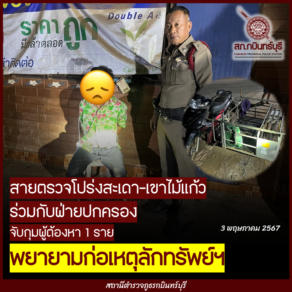 เมื่อวันที่ 3 พ.ค.67 สายตรวจโปร่งสะเดา-เขาไม้แก้ว ร่วมกับฝ่ายปกครอง ได้ร่วมจับกุมตัว นายเจตนา อายุ 36 ปี พร้อมด้วยของกลาง 1.รถจักรยานยนต์ จำนวน 1 คัน 2.อุปกรณ์เครื่องมือช่าง จำนวน 1 ชุด
