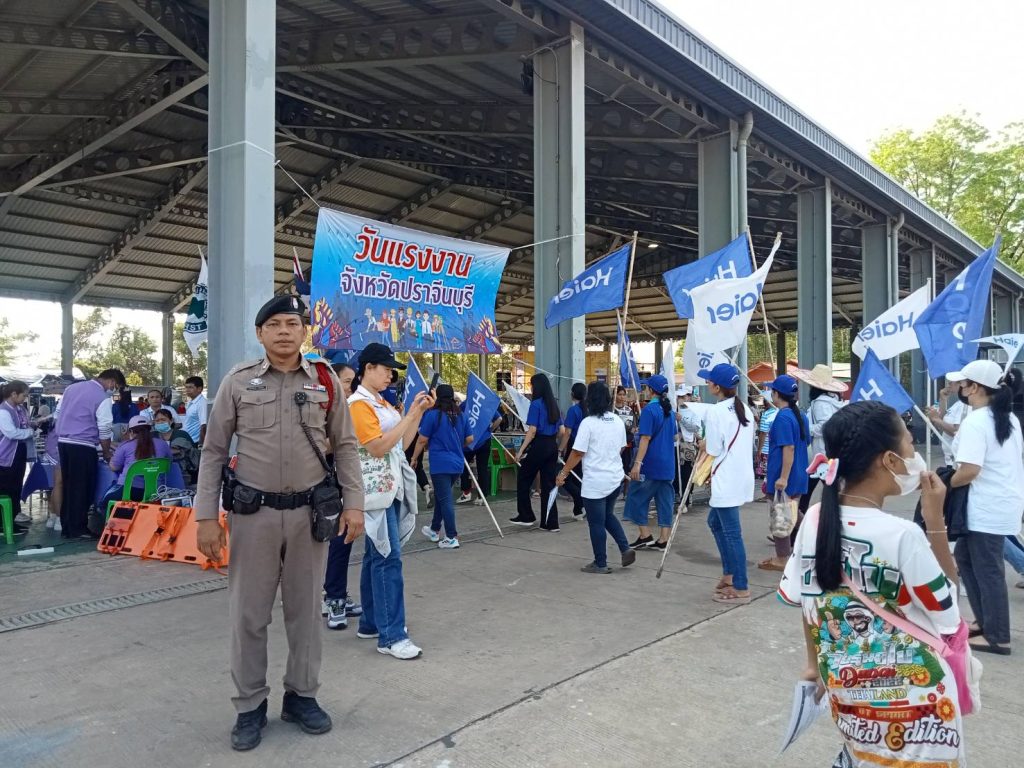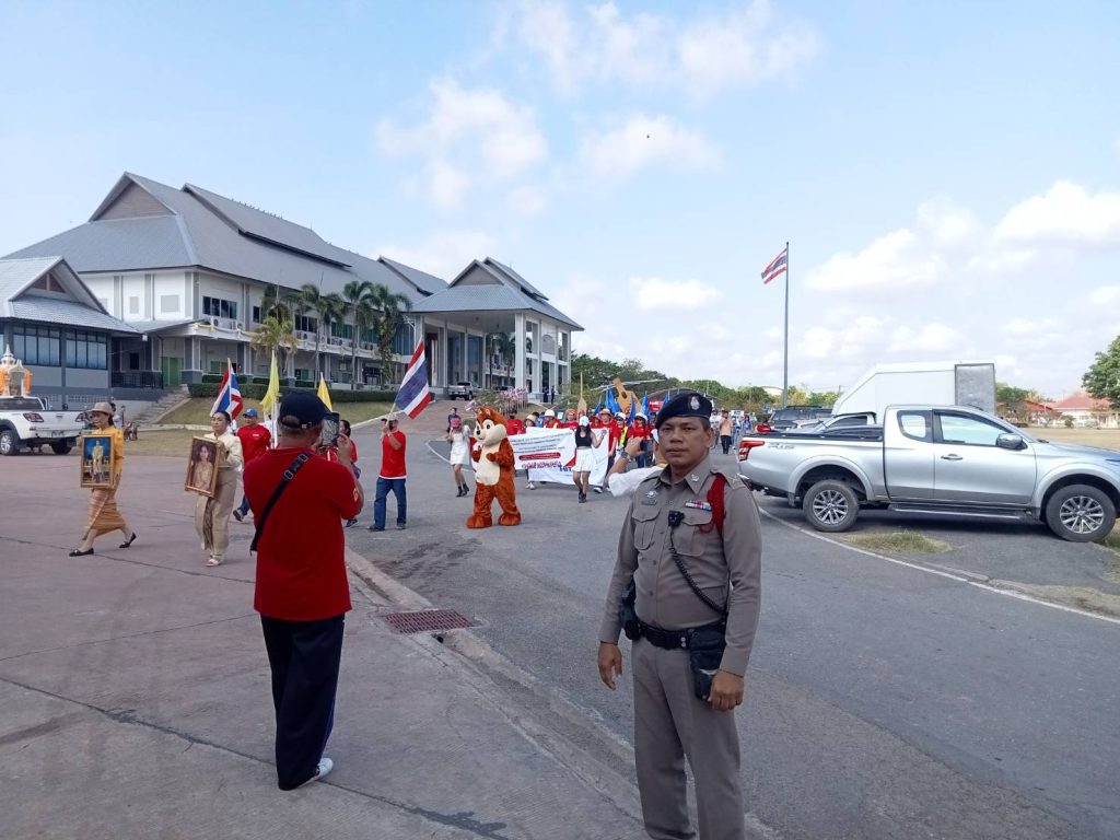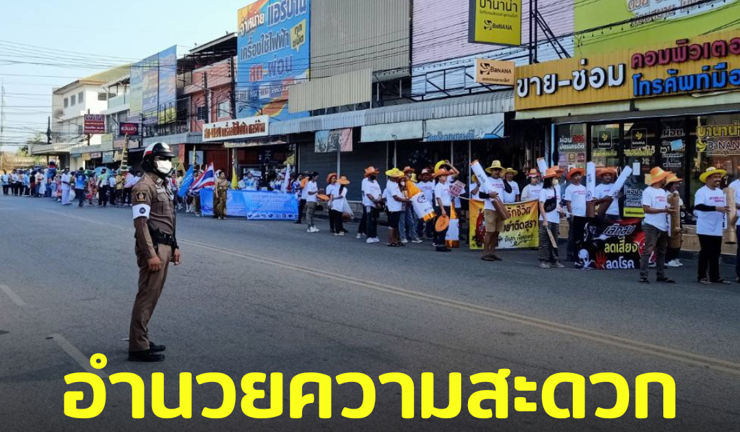 อำนวยความสะดวกการจราจร การเดินขบวนรณรงค์กิจกรรมวันเเรงงานแห่งชาติ บริเวณจุดเริ่มต้น ตลาดโคกอุดม – เทศบาลเมืองหนองกี่
