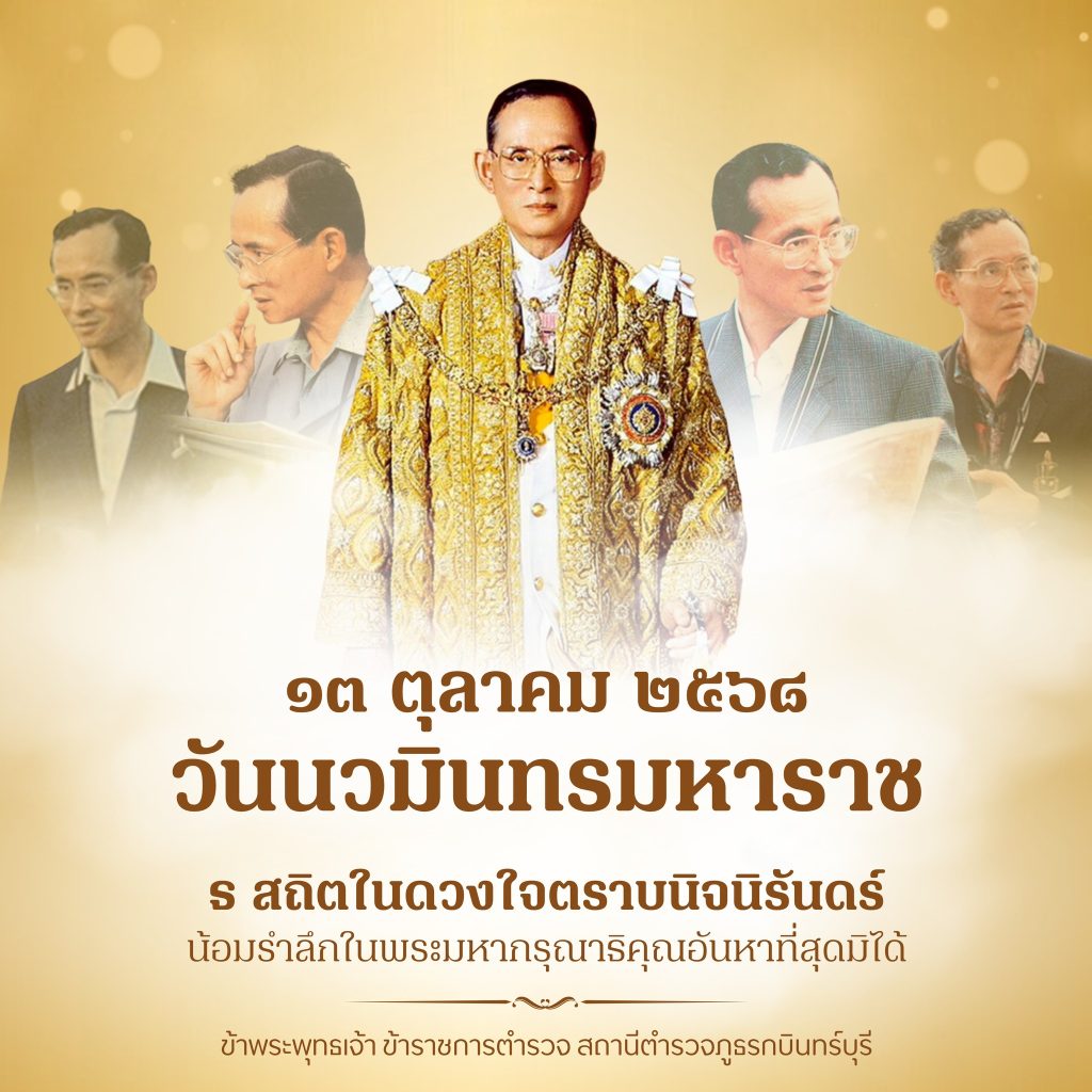 เนื่องในวันคล้ายวันสวรรคตพระบาทสมเด็จพระบรมชนกาเบศร มหาภูมิพลอดุลยเดชมหาราช บรมนาถบพิตร วันที่ ๑๓ ตุลาคม ๒๕๖๘ “วันนวมินทรมหาราช”