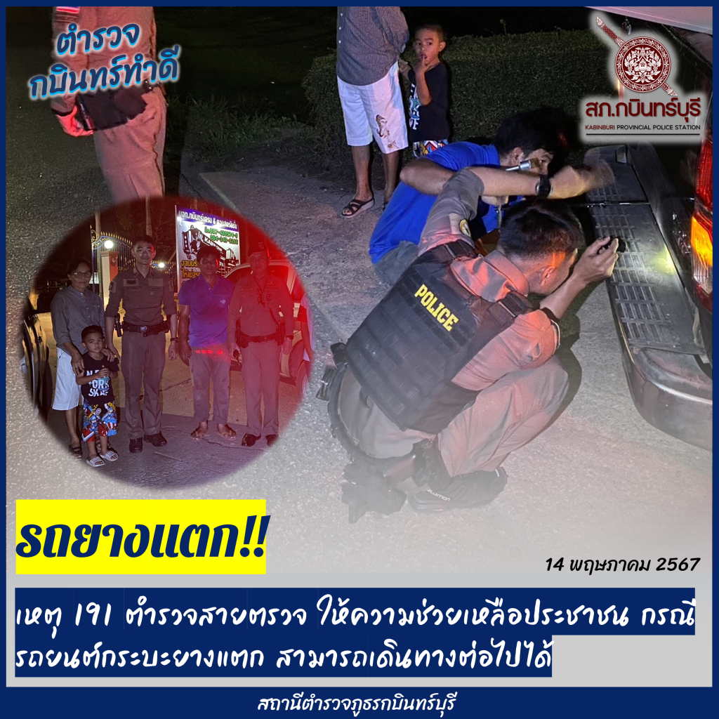เหตุ 191 ประชาชนขอความช่วยเหลือรถยนต์กระบะยางแตก บริเวณหน้ากบินทร์เคน ให้การช่วยเหลือ สามารถเดินทางต่อไปได้ครับ