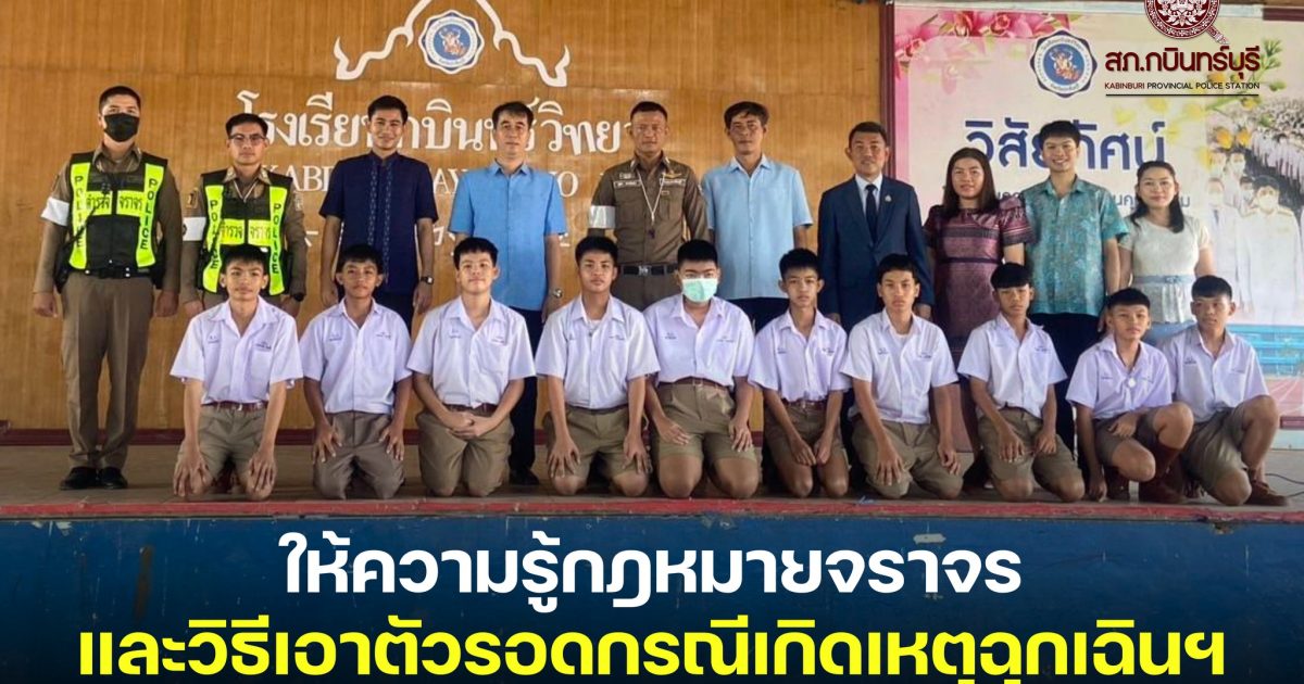 เป็นวิทยากรให้ความรู้กฎหมายจราจรเบื้องต้น และรณรงค์เกี่ยวกับการขับขี่ปลอดภัย รวมไปถึงการให้ความรู้และวิธีการเอาตัวรอดในกรณีประสบอุบัติเหตุในรถโดยสาร รถรับ-ส่ง นักเรียน และรถทัศนศึกษา ให้กับนักเรียนชั้นมัธยม ชั้นปีที่ 1 – 6 ณ โรงเรียนกบินทร์วิทยา อ.กบินทร์บุรี จ.ปราจีนบุรี