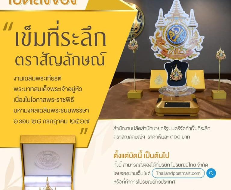 ไปรษณีย์ไทย เปิดสั่งจองเข็มที่ระลึกตราสัญลักษณ์งานเฉลิมพระเกียรติพระบาทสมเด็จพระเจ้าอยู่หัว เนื่องในโอกาสพระราชพิธีมหามงคลเฉลิมพระชนมพรรษา ๖ รอบ ๒๘ กรกฎาคม ๒๕๖๗