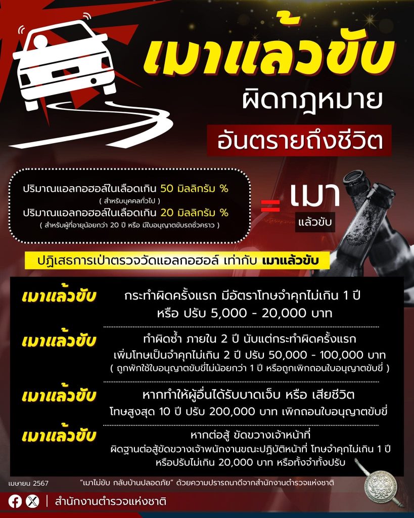 āļŠāļģāļ™āļąāļāļ‡āļēāļ™āļ•āļģāļĢāļ§āļˆāđāļŦāđˆāļ‡āļŠāļēāļ•āļīāđ€āļ•āļ·āļ­āļ™āļ›āļĢāļ°āļŠāļēāļŠāļ™āļœāļđāđ‰āļ‚āļąāļšāļ‚āļĩāđˆāļĒāļēāļ™āļžāļēāļŦāļ™āļ°āļ—āļļāļāļ›āļĢāļ°āđ€āļ āļ— āļŦāļēāļāđ€āļĄāļēāđāļĨāđ‰āļ§āļ‚āļąāļš āļĄāļĩāļ„āļ§āļēāļĄāļœāļīāļ”āļ•āļēāļĄāļāļŽāļŦāļĄāļēāļĒ āļ­āļąāļ™āļ•āļĢāļēāļĒāļ–āļķāļ‡āļŠāļĩāļ§āļīāļ•āļ•āļ™āđ€āļ­āļ‡āđāļĨāļ°āļœāļđāđ‰āļ­āļ·āđˆāļ™