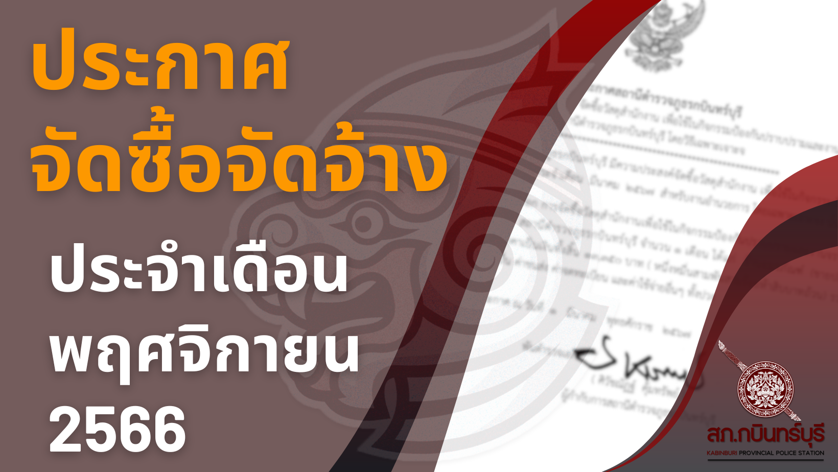 ประกาศผู้ชนะการเสนอราคาจ้างเหมาทำความสะอาดที่ทำการ สถานีตำรวจภูธรกบินทร์บุรี โดยเฉพาะเจาะจง ตามที่ ส