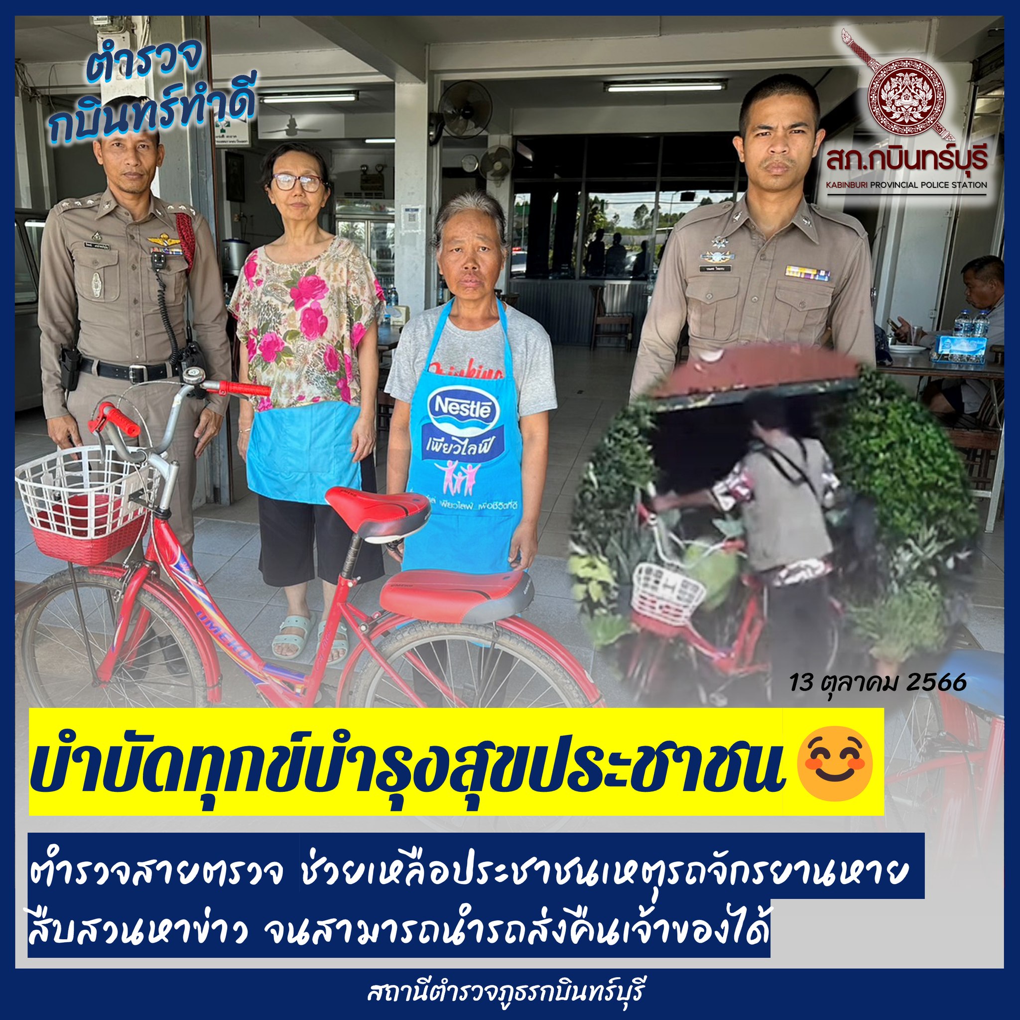 วันที่ 13 ต.ค.66 12.00 น. ร.ต.อ.ธีรพงษ์ เดชอำพรภิญโญ รอง สวป.สภ.กบินทร์บุรี ร้อยเวรป้องกันปราบปราม พ