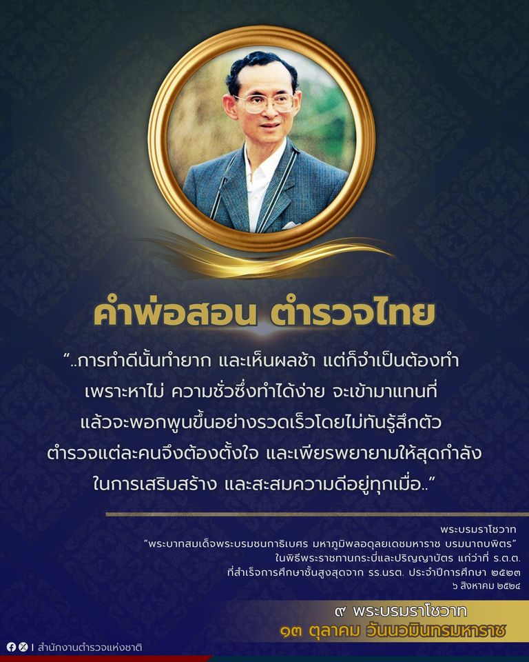 “วันนวมินทรมหาราช” 13 ตุลาคม คำพ่อสอน ตำรวจไทย “ .. การทำดีนั้นทำยาก และเห็นผลช้า แต่ก็จำเป็นต้องทำ