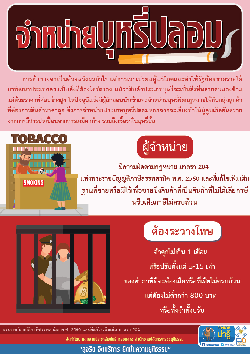 ชื่อตอน : จำหน่ายบุหรี่ปลอมการค้าขายจำเป็นต้องหวังผลกำไร แต่การเอาเปรียบผู้บริโภคและทำให้รัฐต้องขาดร