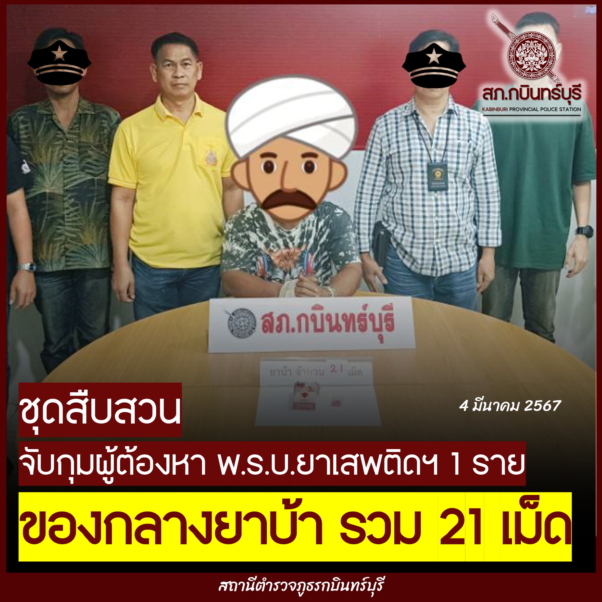 วันที่ 4 มี.ค.67 ชุดสืบสวน ได้ร่วมกันทำการจับตัว นายมาโนด อายุ 42 ปี พร้อมของกลาง ยาบ้า จำนวน 21 เม็