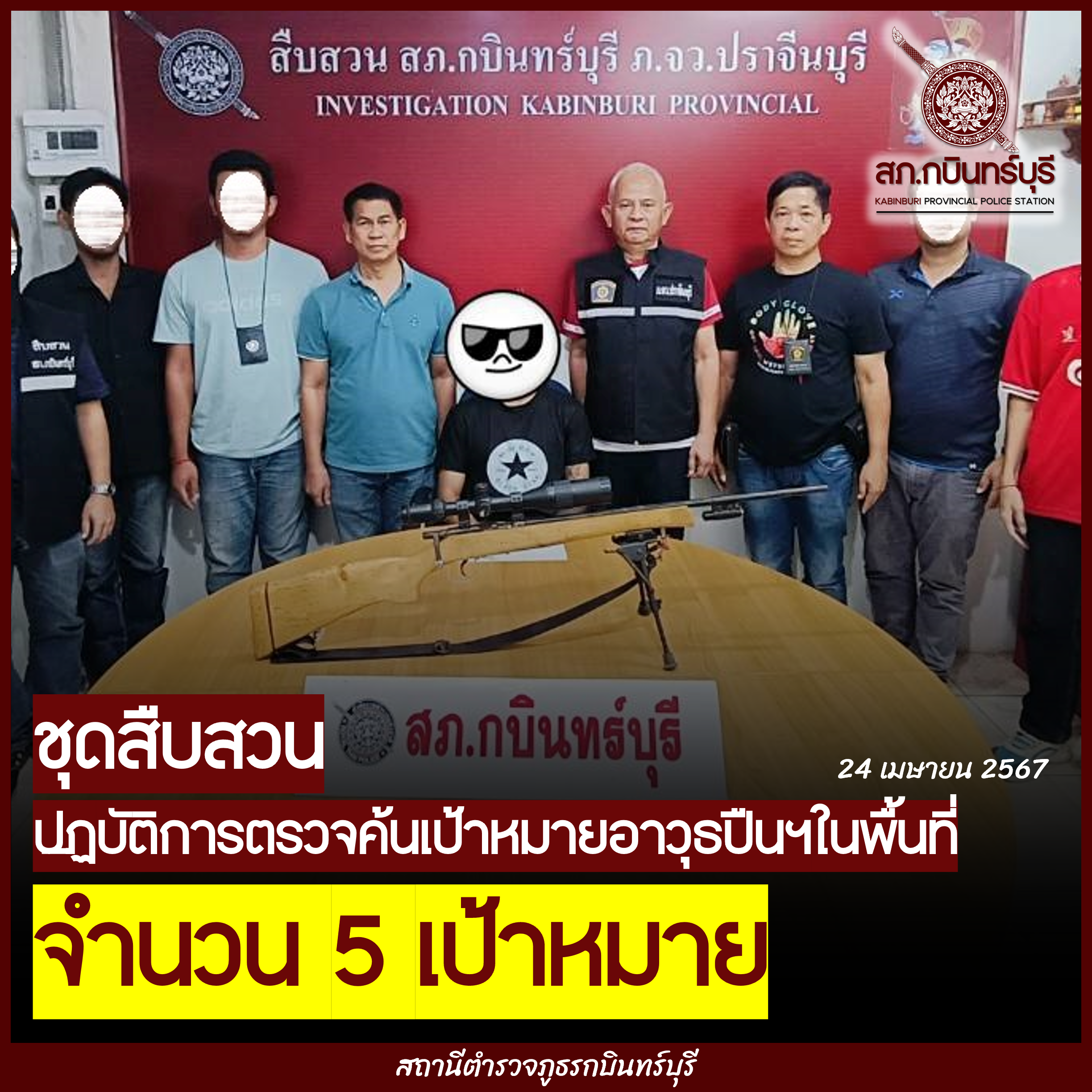 เมื่อวันที่ 24 เม.ย.67 ชุดสืบสวน ปฏิบัติการตรวจค้นเป้าหมายอาวุธปืนและสิ่งของผิดกฎหมาย จำนวน 5 เป้าหม