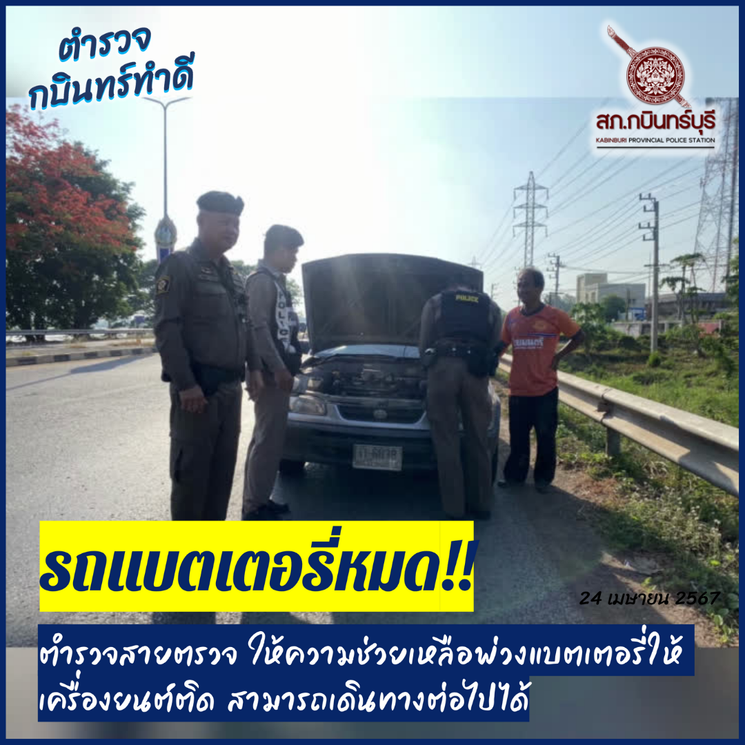 ตำรวจกบินทร์ ช่วยเหลือประชาชนรถแบตเตอรี่หมด