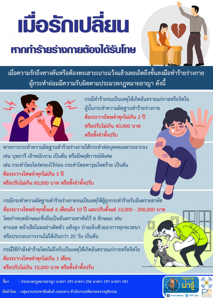 เมื่อความรักถึงทางตันหรือต้องทะเลาะเบาะแว้งแล้วเลยเถิดถึงขั้นลงมือทำร้ายร่างกาย ผู้กระทำย่อมมีความรั